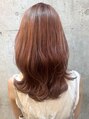 ロングのウルフスタイルカラーはブリーチ一回~のピンクベージュベースの明るさによってはブリーチなしでも対応可能顔まわりの透け感とふんわり感のある動きが可愛いスタイルです