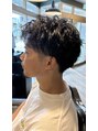 サイド、ネープをツーブロック、トップは強めにパーマをかけて前髪をかきあげる事により色気を演出。ヤンチャかつセクシーなスタイルです。