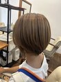 えり足をすっきり締めて、後頭部に自然な丸みを出したコンパクトなショート。トップから表面は重さを残しつつ、内側にだけ軽さを入れているので、広がらずにツヤとまとまりが出るスタイル♪