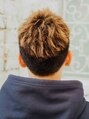 今年流行りのメンズのショートスタイル。耳上をすっきりと借り上げてトップを残したショートスタイルはとてもカジュアルにかっこよく見えます。トップが明るめのカラーなのでセットをした時におうとつ感が出ます。