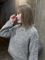 ブリーチベースに柔らかなミルクティーカラーを。2枚目→室内光。3枚目→自然光。場所によっても色の見え方が異なります。どこにいても柔らかに綺麗に見えるように。カットはシンプルなボブスタイルです。