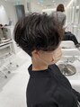 刈り上げ×パーマでメリハリを出したハンサムショートです。横と後ろは刈り上げ、トップ周辺はパーマで柔らかさを出し躍動感のあるヘアスタイルに仕上げました。洋服にも合わせやすくスタイリングもしやすいヘアスタイルです。