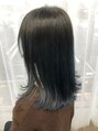 ブリーチ履歴を生かしたブルーアッシュ。イルミナカラーを使用。ブリーチ後の伸びかけで色に迷われている方にオススメです!仕上げはコテでナチュラルに外ハネスタイルで仕上げました。