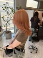 ケアブリーチで明るめオレンジカラー x セミロングレイヤー