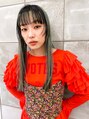 インナーカラーパッツン前髪姫カット個性的ペールグリーン