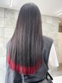 個性派個性的カラーレッドカラーインナーカラーデザイン黒髪
