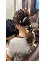 人気の編み下ろしヘアー。髪飾りが沢山ある方が、華やかに、でもバランス良く。すっきりと可愛い感じが、よく似合います。ありがとうございました。