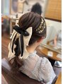編み下ろし系の、金箔ヘアーです。おリボン悩まれていましたので、2個重ね付けで更に可愛くアレンジ。小物のバランスも丁寧にご相談に応じておりますので、是非気軽にお持ちくださいませ。