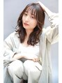 人気のセミディスタイルに大きめのカールでくびれと動きを出し今っぽく仕上げました。コテでのアレンジがオススメです。仕上げはバームなどの艶感のあるアイテムがおすすめです。カラーはグレージュで赤みを消してほんのりトーンダウン。