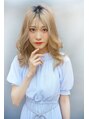 夏らしいハイトーンスタイル。可愛い中にもリバースカールで大人っぽく。32mmのコテで外ハネに顔周りは一番小顔に見える位置にカールが来るようにバランスを見て