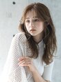 透明感溢れるオリーブベージュカラーとやわらかくほつれるゆるパーマの重なりがこなれた印象のセミロングレイヤー。目にかかるうざめのシースルーバングでさらに抜け感をプラス。ゆるいくびれのひし形シルエットが女性らしく大人カジュアルな雰囲気に。