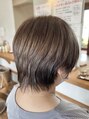 耳たぶが見えるスッキリショートヘア+透明感抜群のクリスタルグレージュ☆ブリーチ有りのWカラーです!白髪は全体の30~40%位の割合です。酵素トリートメントの効果でブリーチでごわつく髪も柔らかくツヤサラな質感に♪