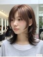 ベージュカラーミディアムウルフ外ハネ