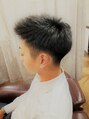 サイド2ブロック、バックはグラデーションで刈り上げた清潔感のあるモヒカンスタイル。毛流れとアップバングでおしゃれビジネスヘアに。