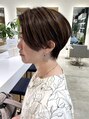美容師歴20年以上の経験から『年齢と共に変化する髪に、どの様に向き合うか?』その答えのひとつが「白髪ぼかしハイライト」と「立体感ショート」の組み合わせです。白髪を活かし、髪に艶と立体感を。後頭部に程よい丸みをもたせたスタイルです。