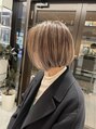 白髪ぼかし育てるハイライト ベージュ ミニボブ