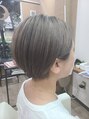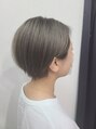 ほんのり前下がりショートボブにやわらかい透明感のある、ブルーアッシュをオン!襟足をキュッと締めてかっこよさもプラス