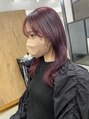 店内照明。編集加工無し。1ブリーチ。ラベンダーカラーを深く濃くしてカシスカラーにしました!濃い目のカラーは1ブリーチでダメージレスに色落ちも綺麗です!