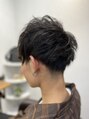 サイドから後ろにかけて中を刈り上げたマッシュショートスタイル。量感調整して動きが出るようにしました。