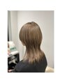 ダブルカラーで透け感ミルクティーウルフカットでスタイリッシュに