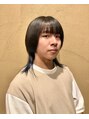 気に入ったスタイルは【ブックマーク】ボタンを押してご来店時ご提示ください☆ストレートタッチのウルフヘア。襟足とサイドのインナーだけネイビーに染めています。