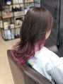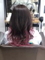 レディースに大人気!巻き髪ピンクインナー♪ブリーチで色素を抜いていき鮮やかなピンクを入れる事でデザイン感のあるスタイルです☆