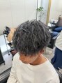 男らしさ全開の「スモーキーグレーパーマ」スタイル!立体感を出しつつも、ほどよい束感と無造作な動きでワイルドに仕上げました。ツイストスパイラル/アップバング/メンズパーマ/プライベートサロン