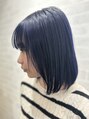 ロブのスタイルに、BLEACHごのカラーチェンジの、ビビットなブルーカラーリングがオシャレ可愛い♪♪♪