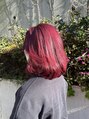 ダブルカラーでつくるチェリーレッド。[カット/カラー/ダブルカラー/イルミナカラー/インナーカラー/ブリーチ/ケアブリーチ/ハイライト/韓国/髪質改善/髪質改善トリートメント/縮毛矯正/酸熱トリートメント/パーマ/前髪/前髪カット/高松/高松駅/高松市]