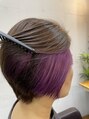 耳周りにイヤリングカラーでブリーチしてレッドバイオレットを入れて他の部分をシルバーベージュでカラーしました。耳周りにさりげなく見えるようにイヤリングカラーをしてるので、髪に動きが出た時に見えるようになっているのでおすすめです。