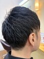 髪の毛が全体的に伸びてしまい、メリハリが無くなってシルエットがくずれてしまっているスタイルを襟足を短くして、サイドをツーブロックにして綺麗なシルエットにしました。ハチの部分を抑えるように乾かしてあげ、最後にワックスを揉み込む簡単スタイル!