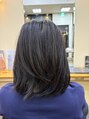 襟足が伸びてもたつきがありうまくまとまらなくなっていたので首もと周辺を短くカットして段を入れてすっきりとしたショートバブに仕上げました。仕上げにオイルをもみ込んで整えるだけなのでとても簡単でおすすめです。
