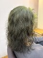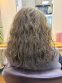 カラーに発色の良いマット系の色で染めました。パーマは根本からしっかりとかけてボリュームが出るように仕上げました。仕上げに艶の出るタイプのスタイリング剤をつけて揉み込むだけの簡単スタイルです。