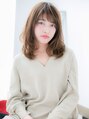 ★お気に入りスタイルは【ブックマーク】を★重めスタイルも毛先に無造作なワンカールをスイングさせて軽さを出し、とろみあるベ-ジュカラーでエレガンスに仕上げた大人のナチュラルセミディ。前下がりがフェアリー♪斜めバング、厚めバングで小顔効果もUP。