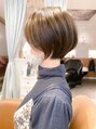 【斉藤がカットしていますのでこの髪型になりたい方はご指名ください】顔周りの髪を長めに残し、頭の形を綺麗に見せるようにカットしたショートヘア。手グシで簡単にまとまるようにカット致します。カラーはグレージュでこなれ感と柔らかさを☆