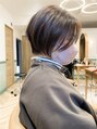 【斉藤がカットしていますのでこの髪型になりたい方はご指名ください】顔周りの髪を長めに残し、頭の形を綺麗に見せるようにカットしたショートヘア。手グシで簡単にまとまるようにカット致します。カラーはグレージュでこなれ感と柔らかさを☆