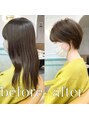 【斉藤のリアルカット☆この髪型になりたい方はご指名ください】顔周りの髪を長めに残し小顔に見える前髪カット、頭の形を綺麗に見せるショートカット。手グシで簡単にまとまるショートヘアです。カラーは白髪も染まる白髪染め&白髪ぼかしハイライトも可能◎