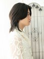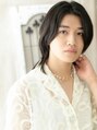 襟足を長めに残したミディアムウルフ。センターパートで長めバングをサイドに自然に流したアンニュイなスタイル。セミウェットにしたり、パーマをかけても◎