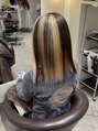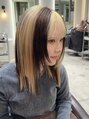 不規則に入れたローライトがかわいいデザインカラーです。施術は通常のダブルカラーよりお時間かかるため、ご希望の際はお電話下さい。