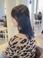 ぱつっとダメがかわいいぱっつん前髪とインナーカラーのスタイルです。ブルー系はブリーチ2回からです。