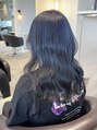 ブリーチ一回で出来るネイビーカラーです。黒染めなどで残留が強い方はくすませて暗めにすることでブルー系カラーを楽しむ事ができます!