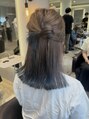 根本ベージュ、中間グレー、毛先ネイビーのグラデーションカラーです!赤みのあるベージュとネイビーは反対色ですが合わせると相性が良くてとってもかわいいです!色を入れたいけど似合うか心配、、な方はグラデーションカラーで挑戦しましょう(^^)