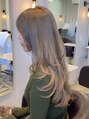 ブリーチ一回でできるシアーグレージュです。高めに入れたレイヤーカットはワンカールでたっぷり動いてくれるので巻くのが苦手な方にも挑戦しやすいスタイルです!
