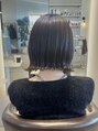 ぷつっとしたラインの切りっぱなしボブです。オイルをつけただけで束感が出るようにこだわりの毛量調整をしています。