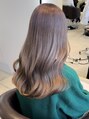 ブリーチ1回~2回で仕上げるグレージュカラーです。少し紫を入れることで色落ち後も透明感が出てきれいです。