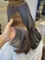 透明感のあるグレージュカラーです。ブリーチなしでダメージなく透明感を出すことができます。