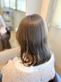 ミディアムレイヤーのスタイルです。顔周りに少しだけレイヤーをいれることで巻いたときに動きがでます!カラーは透明感あふれる、ミルクティーベージュです。ブリーチなしでできるミルクティーベージュです。