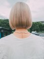 ハイトーンアッシュホワイトワンレンボブ♪ブリーチで抜いたハイトーンにほんのりかぶせたホワイトアッシュカラーがシンプルなワンレンボブによく合います!仕上げはアイロンでまとめるのがベスト!!シンプルな分メイクにも目を引くスタイルですね。
