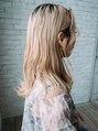 外国人風ハイトーンミディアムスタイル。顔まわりにレイヤーが入っているのでセンターパートに分け流すように巻くことでクールな印象に。根元に暗い部分を残し立体感を出すことによて動きを出し重過ぎない軽い印象に。[高崎/高崎駅]