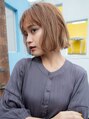 明るめのショートボブ スタイル 顎のラインの前下がりボブなので、小 顔効果になります。 また顔まわりの毛を軽くすることによって、より動きがでて とても可愛くなります!前髪は薄めで少し長めにすることで今っぽいスタイルになります。
